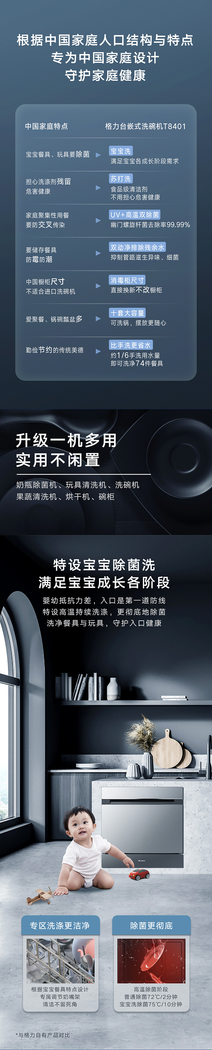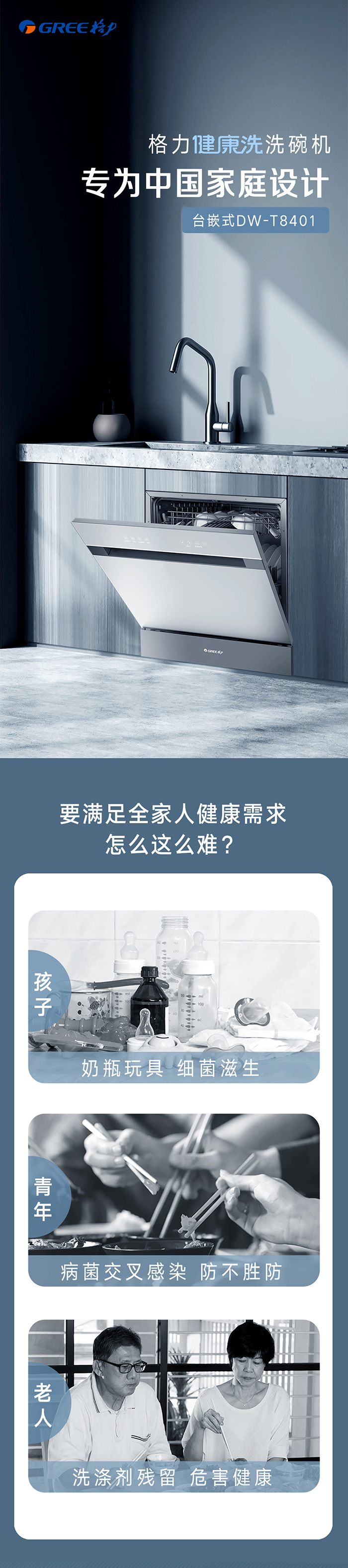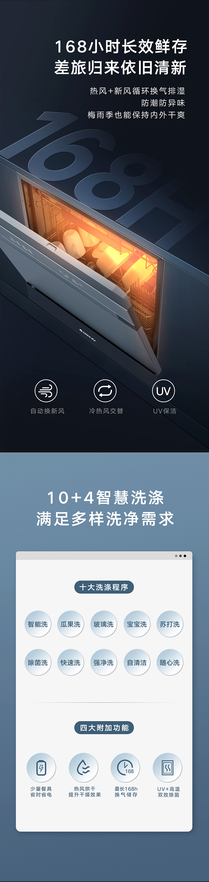 PA视讯健康洗洗碗机,专为中国家庭设计;洗除排烘存更全能;热风循环烘干,内腔餐具都干爽