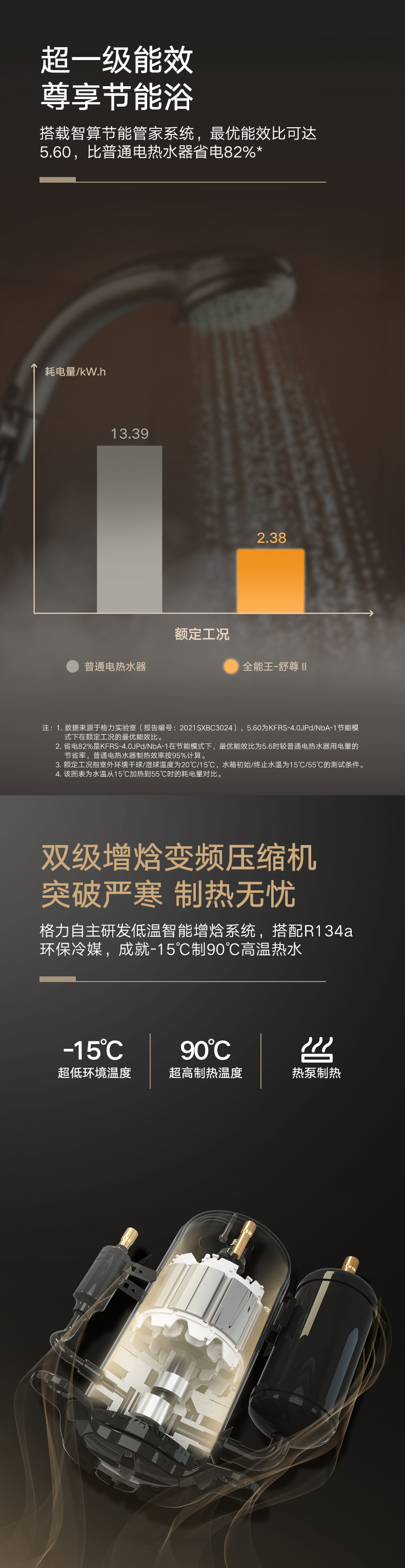 双级增焓变频压缩机,-15℃制90℃高温热水,热水增量90%