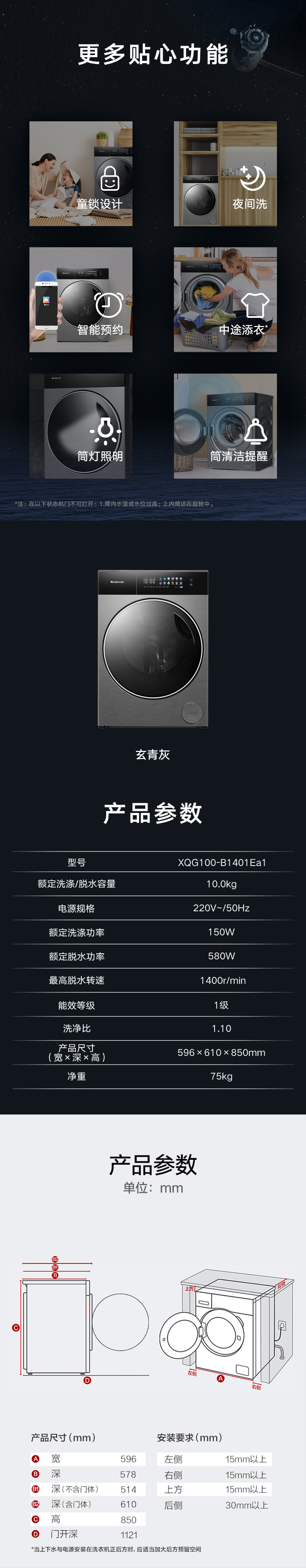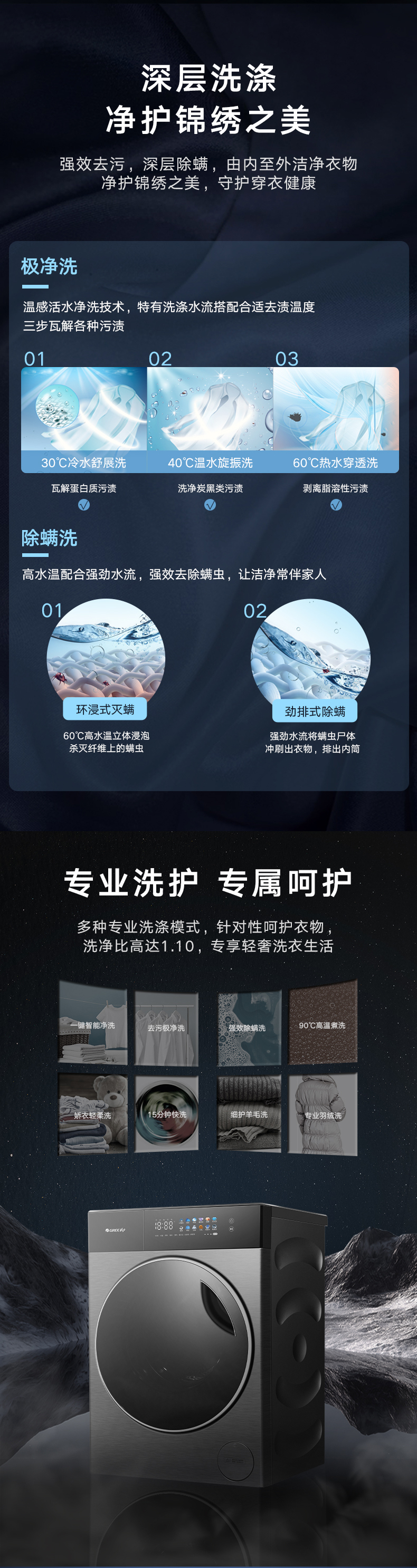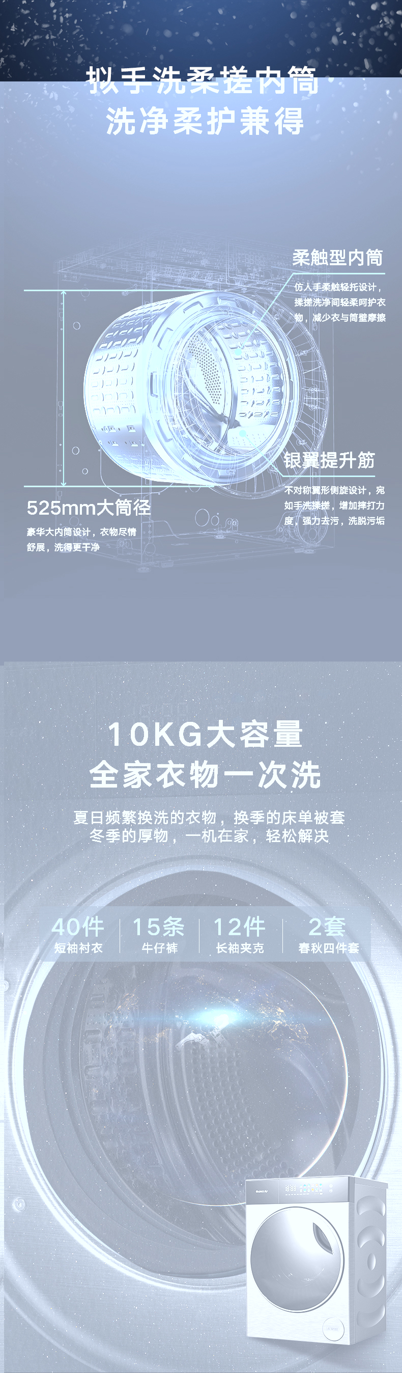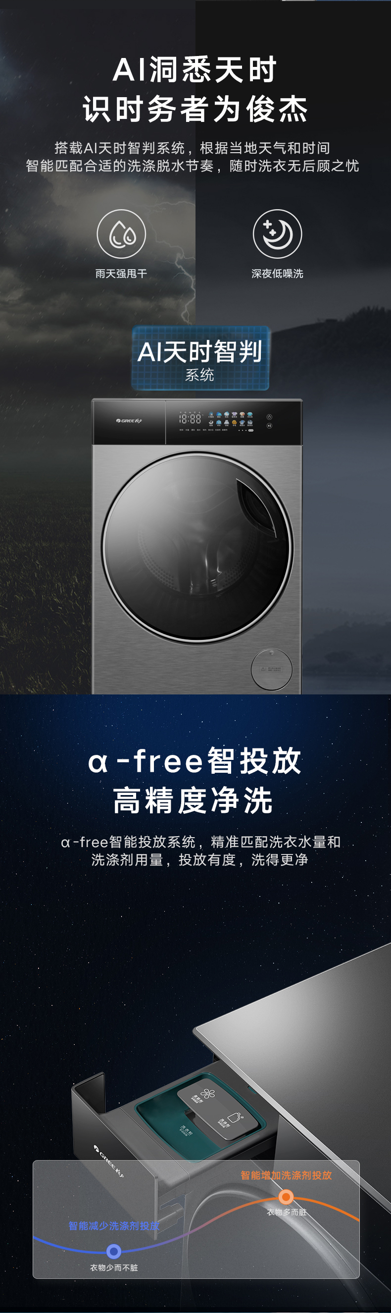 AI智能感应,脏污一键洗净。AI慧眼识污,智能判断洗涤净度,洗净比高达1.1