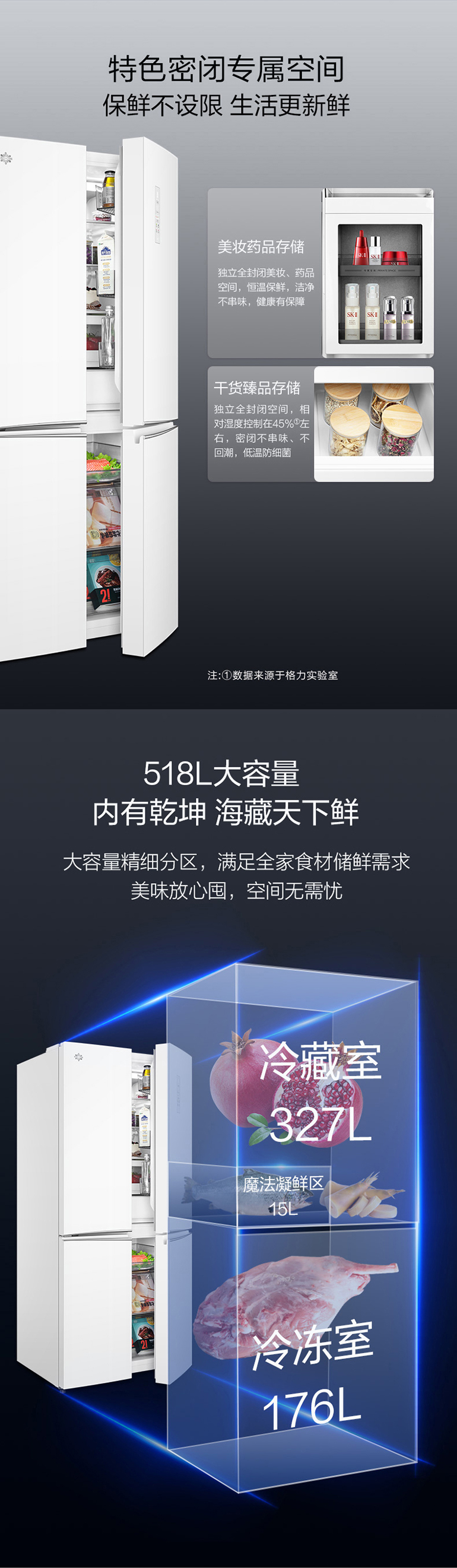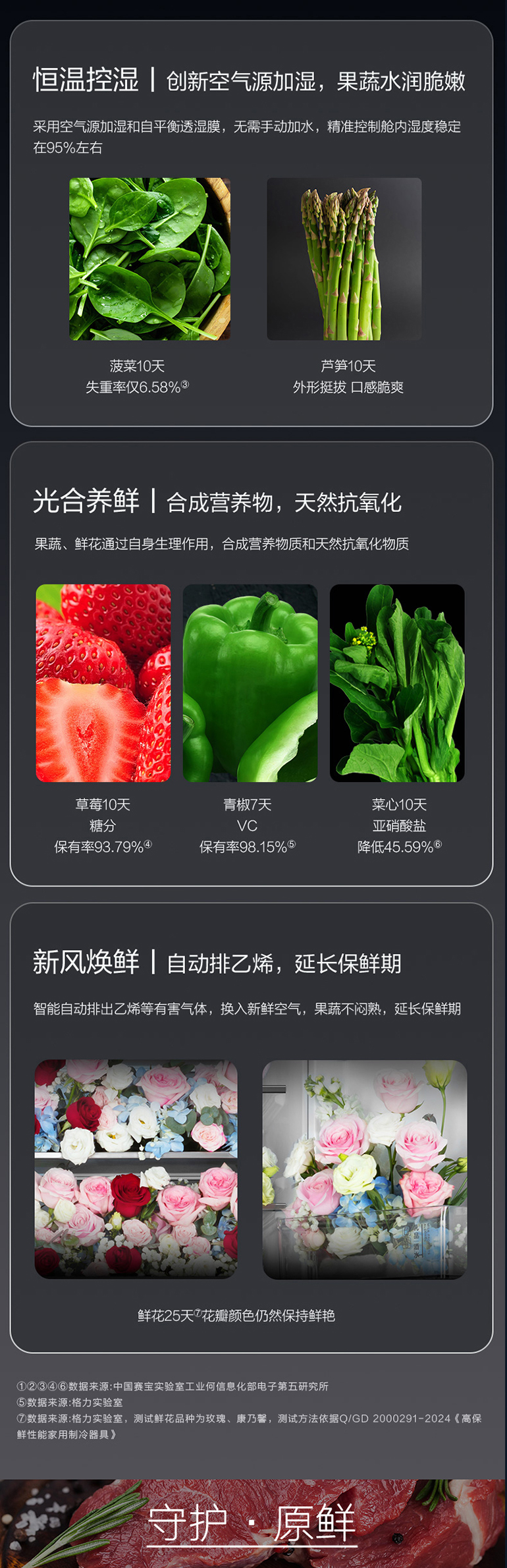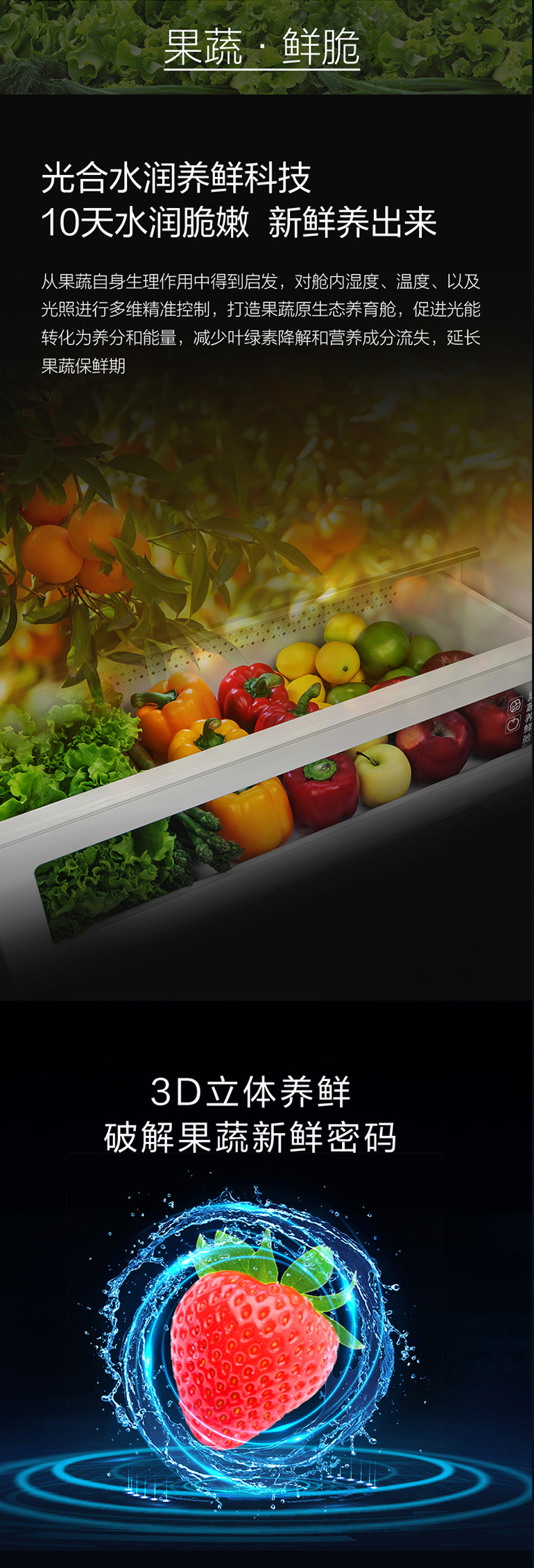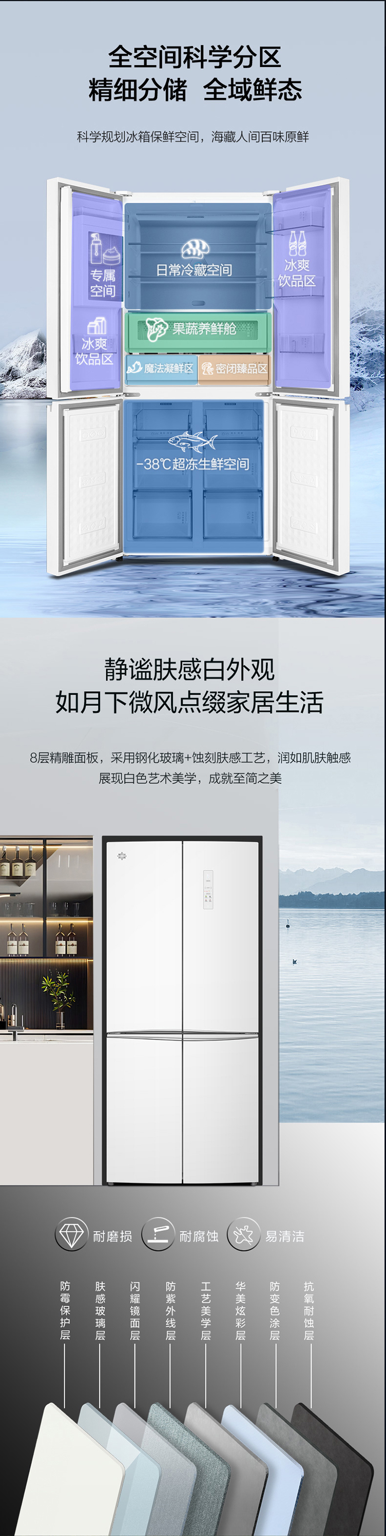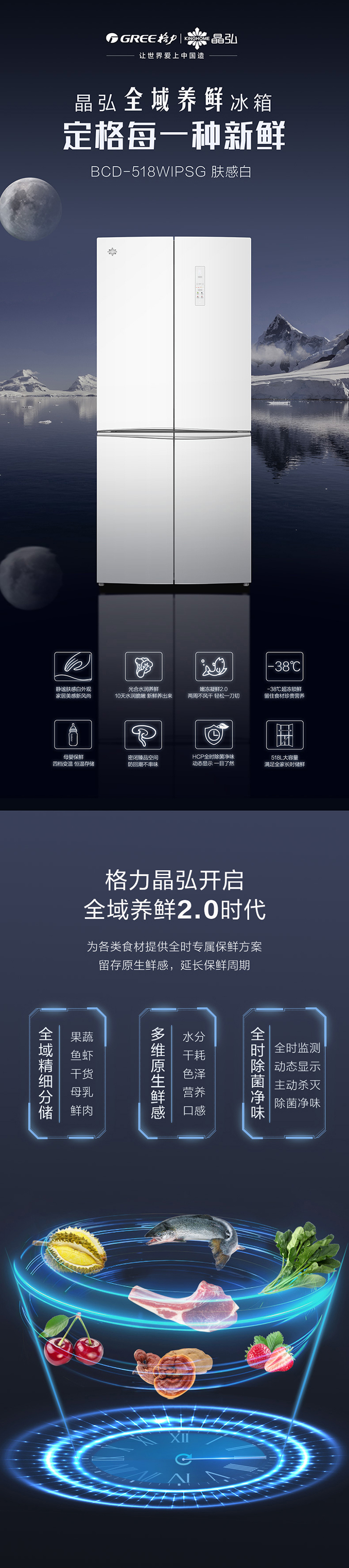 -38℃超冻锁鲜;光合水润养鲜;嫩冻凝鲜2.0;HCP全时除菌净味