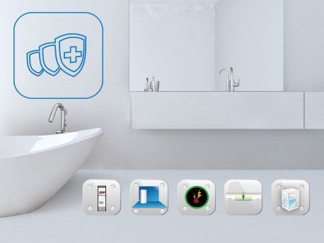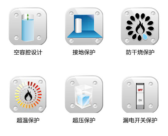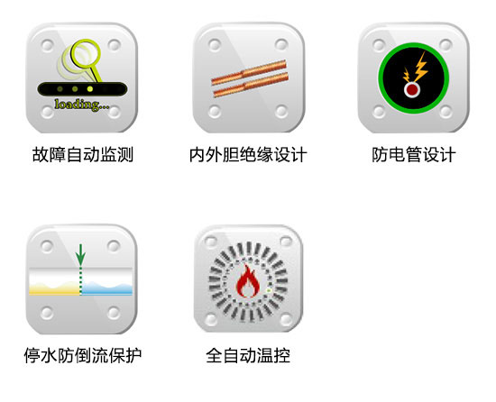 配有漏电开关保护、防电管设计、意外漏电保护、停水防倒流保护、超压保护等多项保护功能,让您使用安全无忧。 |