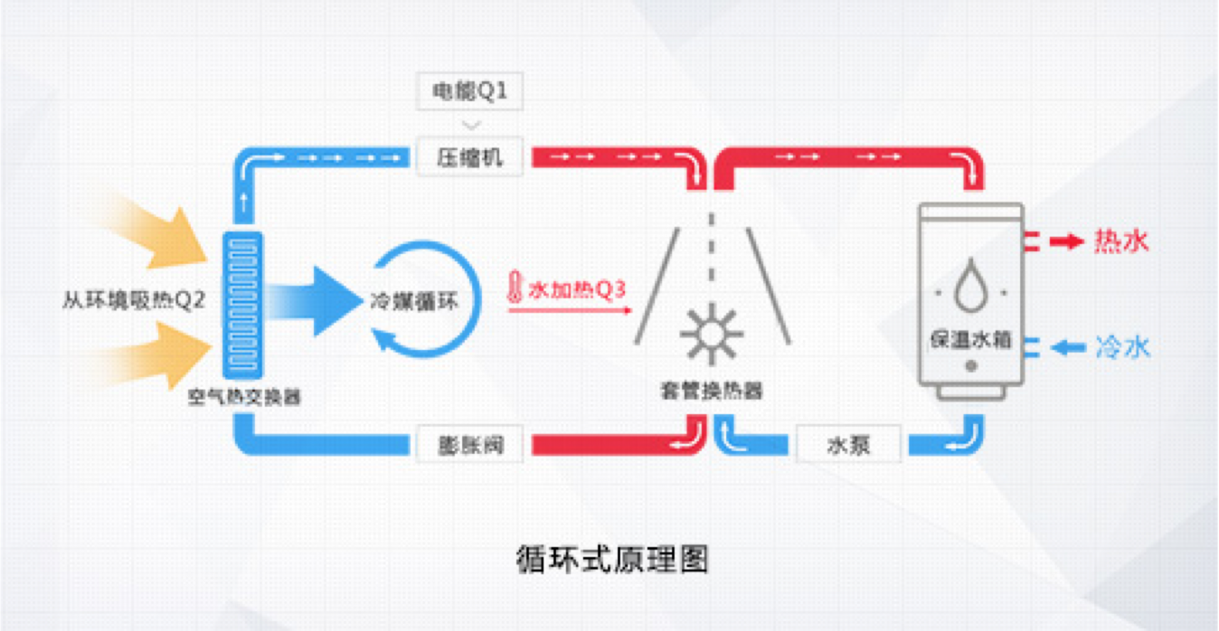 PA视讯空气能热水器,传承空调核心科技,以消耗一部分电能为补偿,通过热力循环,从周围环境的低品位能源(空气源)取得热量,通过压缩机将其输送至冷凝器,释放给水箱内的水将其加热。它的工作原理与空调制热时的原理相类似,只是空调是 从自然环境中吸取热量,供给室内空气,而空气能热水器是以这部分热量加热生活热水,其能效比是电热水器的4倍,是燃气热水器的5倍,是太阳能热水器的近2倍,是一种新型的高效、节能、环保的热水器产品。一度电的付出,4倍热量的收获!